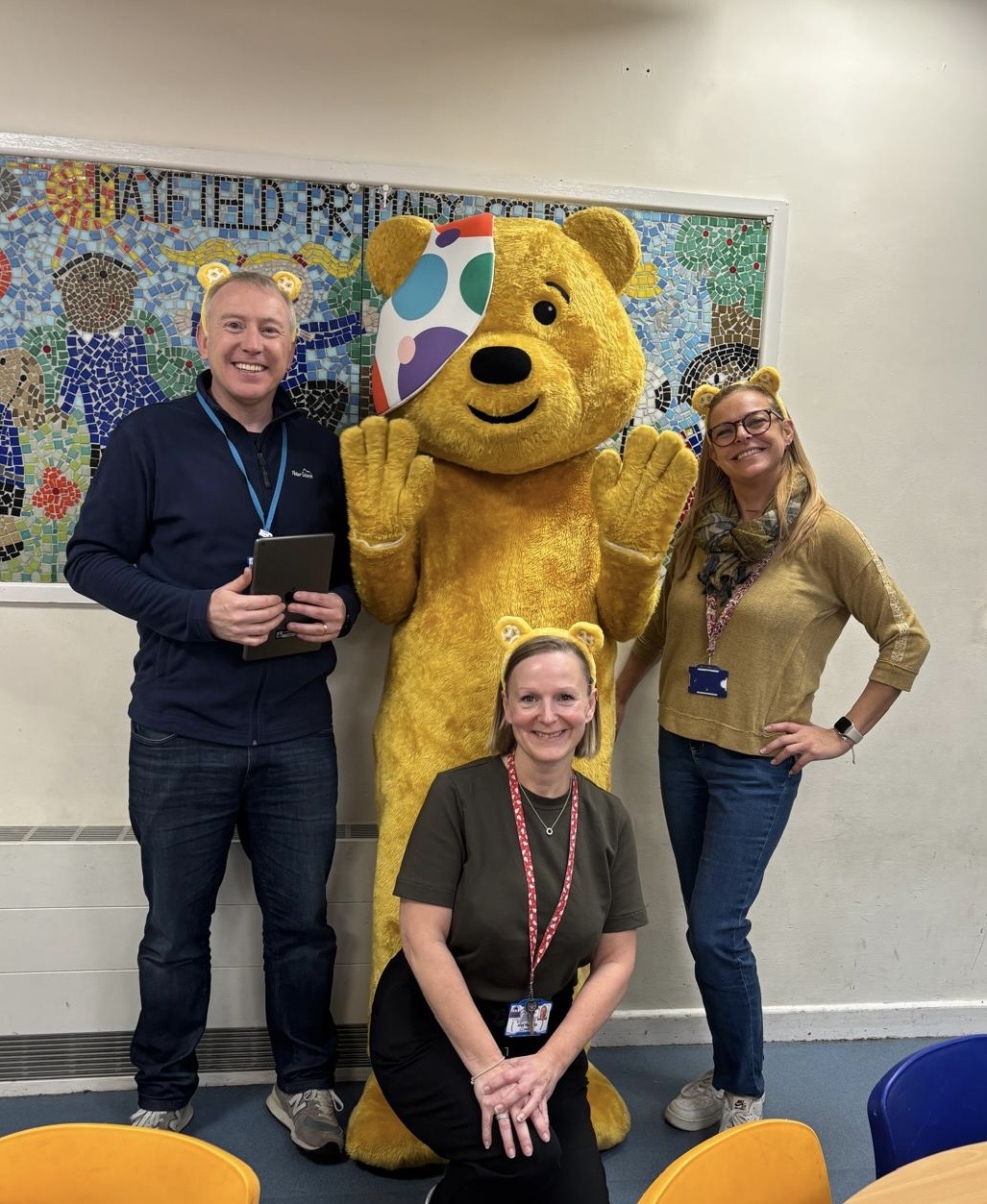 Pudsey came to school today to say thank you for our Children in Need fundraising organised by the PTA. Everyone was very excited to meet him!